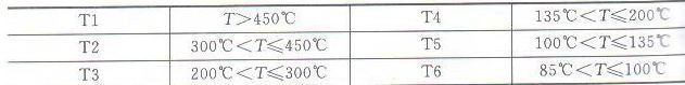 爆炸性氣體混合物引燃溫度等級見表3-12