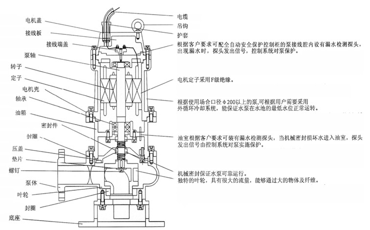 【不銹鋼潛水排污泵QWP型結(jié)構(gòu)圖: