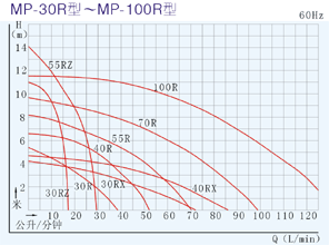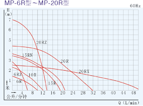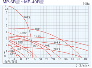 【MP型塑料微型磁力驅(qū)動(dòng)循環(huán)泵】性能曲線圖: