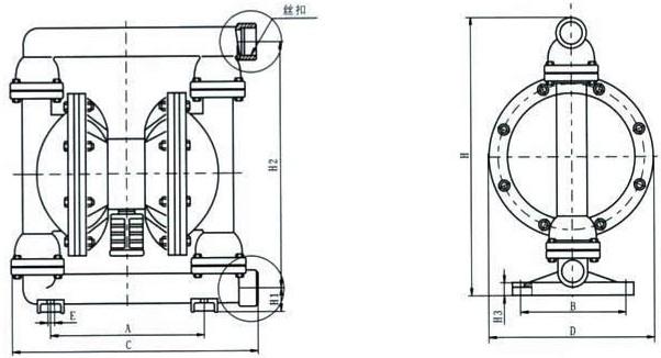 【QBY型工程塑料氣動(dòng)隔膜泵】安裝尺寸: