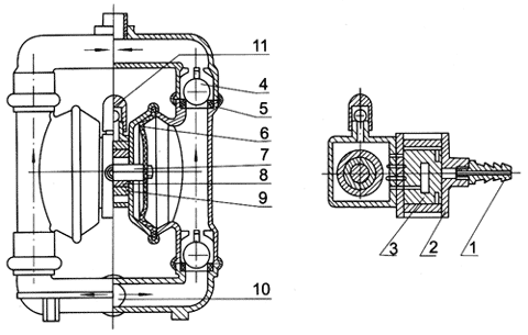 【QBY型工程塑料氣動(dòng)隔膜泵】結(jié)構(gòu)原理: