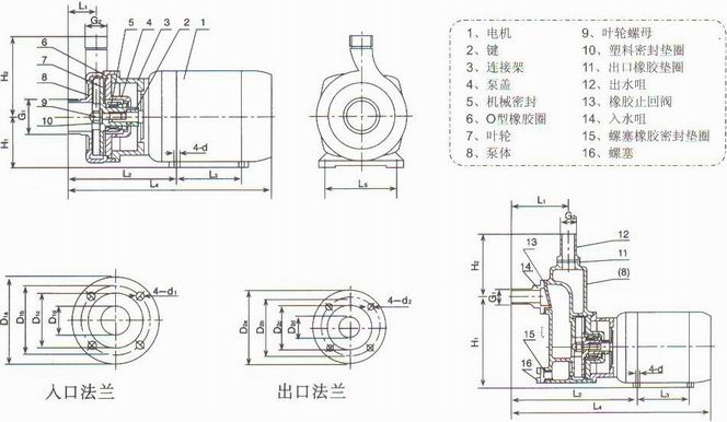 2、機械密封:靜環(huán):陶瓷(SiC)。動環(huán)石墨浸漬呋喃樹脂。