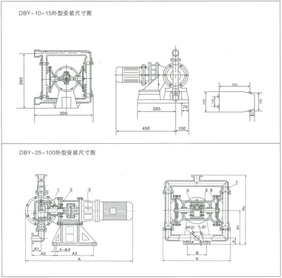 【不銹鋼電動隔膜泵DBY型】安裝尺寸: