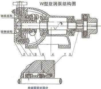 單級(jí)旋渦泵1W型結(jié)構(gòu)圖: