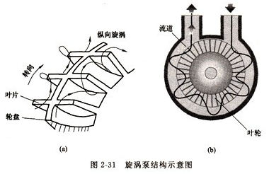 旋渦泵葉輪具有開式和閉式兩種,閉式葉輪葉片凹槽內(nèi)設有中間隔板,如圖2-31(a)所示:開式葉輪無中間隔板。