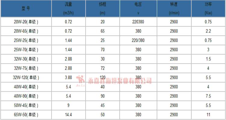 W型旋渦泵的性能參數(shù)表: