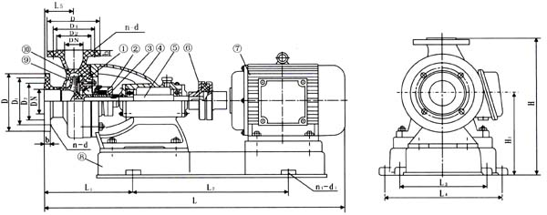 S型玻璃鋼離心泵結(jié)構(gòu)圖及安裝尺寸