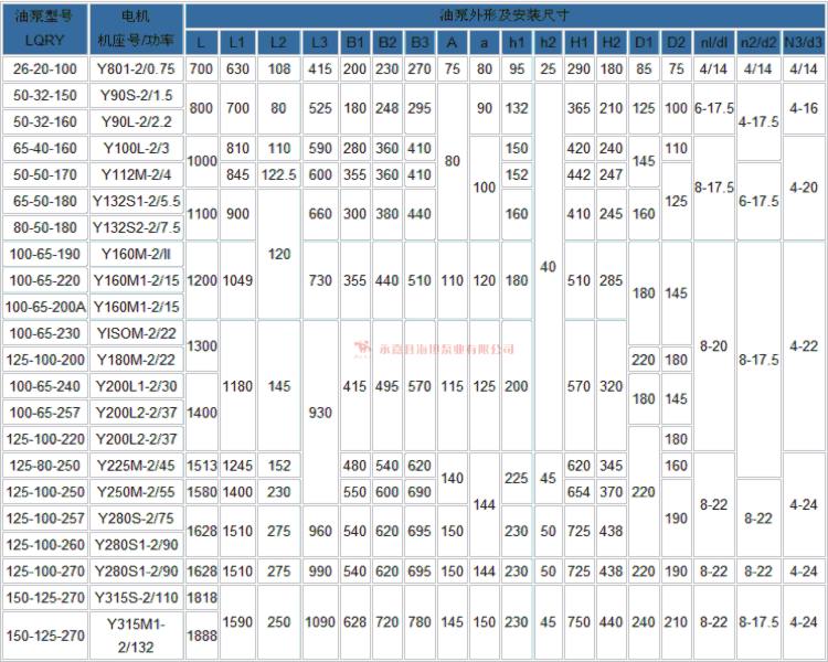 【LQRY型熱油泵(導(dǎo)熱油泵)】性能參數(shù):